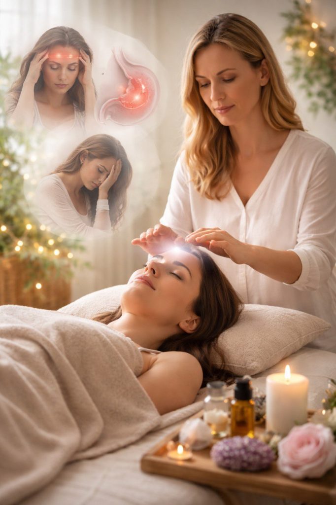 Energetická terapie uvolňuje napětí, obnovuje rovnováhu a pomáhá zmírnit potíže, které stres způsobuje – od bolestí hlavy přes zažívací problémy až po psychické vyčerpání.