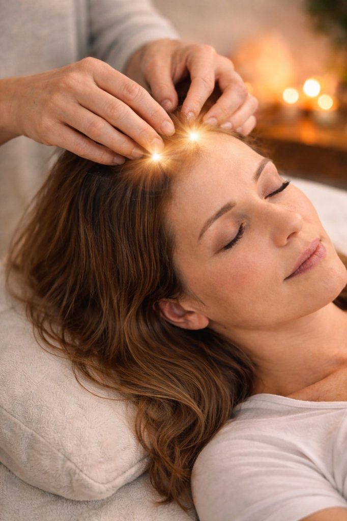 Energetický přenos proniká hluboko do molekulární struktury těla a spouští transformační proces vedoucí k opětovnému růstu vlasů.